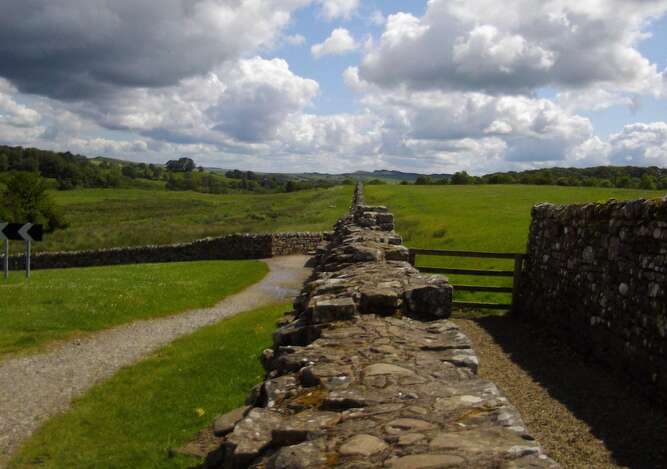 Hadrian’s Wall was built by order of the Emperor Hadrian, probably given during his visit to Britain in AD 122. Over the next six years professional soldiers, legionaries, built a wall 80 Roman miles long (117km or 73 modern miles), from Wallsend-on-Tyne in the east to Bowness-on-Solway in the west. As with most building work, modifications carried on long after this.